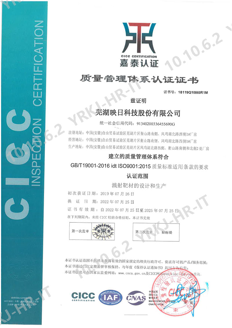 > ISO9001質(zhì)量管理體系認(rèn)證證書