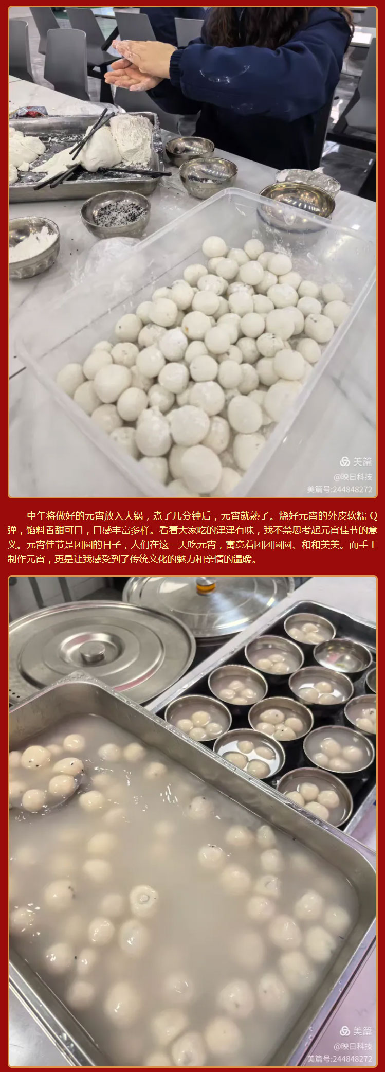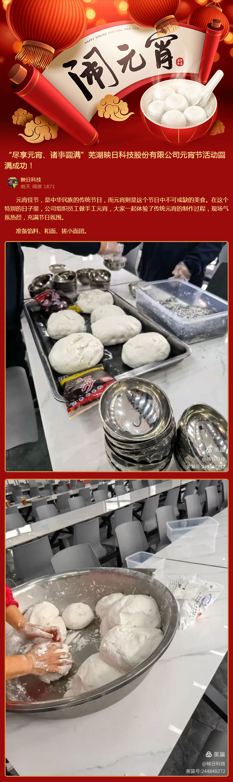 “盡享元宵、諸事圓滿”蕪湖映日科技股份有限公司元宵節(jié)活動圓滿成功! 來源: 發(fā)布時間:2025-02-14 上一條:沒有了 下一條:2024年度蕪湖映日科技股份有限公司“暢游一夏、樂享太平湖”之旅圓滿成功!